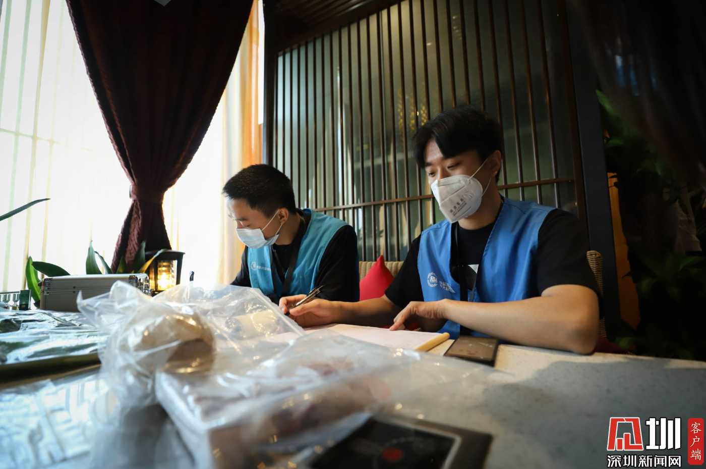 本次行動主要檢查餐飲單位復工復產、防疫防控以及日常食品安全管理措施是否落實到位,南山區(qū)人大代表和食品安全志愿者全程參與監(jiān)督執(zhí)法行動。當天,執(zhí)法人員分別就餐廳防疫物資準備、后廚衛(wèi)生情況、顧客分區(qū)就座等情況,查看兩家餐廳是否落實到位。并由專業(yè)檢測人員正在對餐廳的食材進行快速檢測。