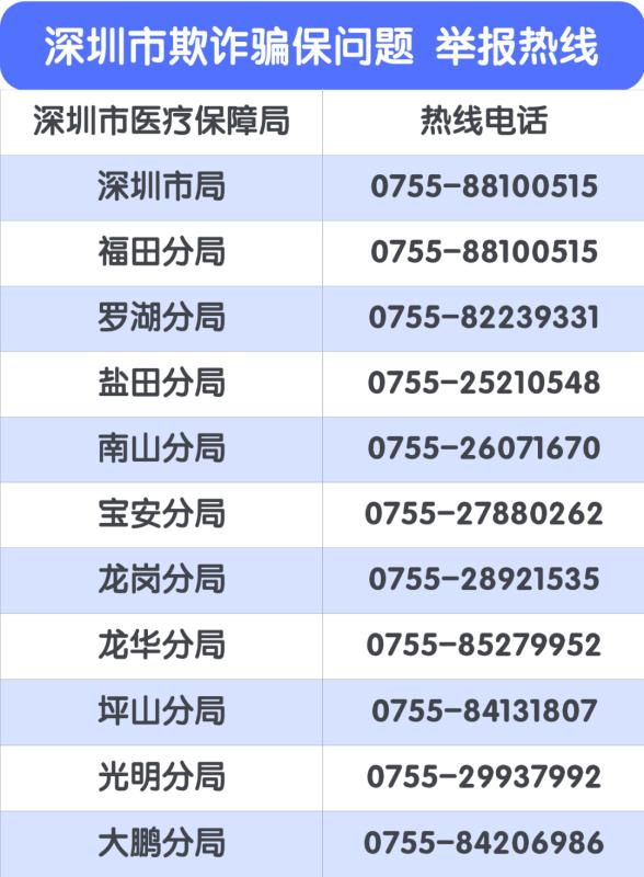 市醫(yī)保局已在深圳市各區(qū)設(shè)立投訴舉報電話,歡迎廣大市民共同參與醫(yī)保基金監(jiān)督管理。市民可通過實名舉報和匿名舉報方式檢舉、揭發(fā)欺詐騙保行為,經(jīng)查證屬實的,將根據(jù)《深圳市欺詐騙取醫(yī)療保障基金行為舉報獎勵實施細(xì)則(試行)》對舉報人予以獎勵,獎金最高可達(dá)10萬元?。ㄓ浾?莊瑞玉)