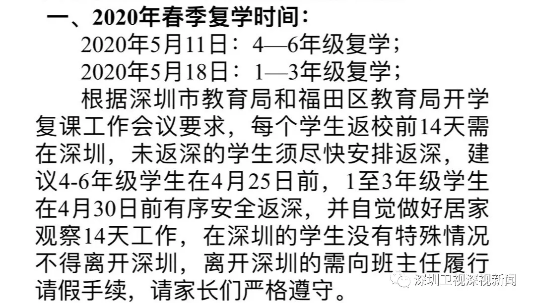 由此看來,深圳目前還未確定除初三、高三之外年級學(xué)生的開學(xué)時間。