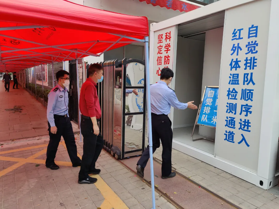 “學(xué)校大門是校園疫情防控的第一道防線,把好校園第一道關(guān)卡至關(guān)重要,采取全封閉管理,對(duì)外來(lái)人員嚴(yán)格詢問(wèn)登記,逢車必檢、逢人必查,在上學(xué)放學(xué)高峰時(shí)段確保校門口安保力量,將風(fēng)險(xiǎn)隱患攔截在校門外?!?月21日,在福田區(qū)云頂學(xué)校排查安全隱患時(shí),福強(qiáng)派出所社區(qū)民警程印對(duì)該校安全負(fù)責(zé)人特別強(qiáng)調(diào)。據(jù)了解,截至4月25日,福田公安分局對(duì)轄區(qū)44所中學(xué)開(kāi)展了檢查,發(fā)現(xiàn)并整改問(wèn)題隱患17處。