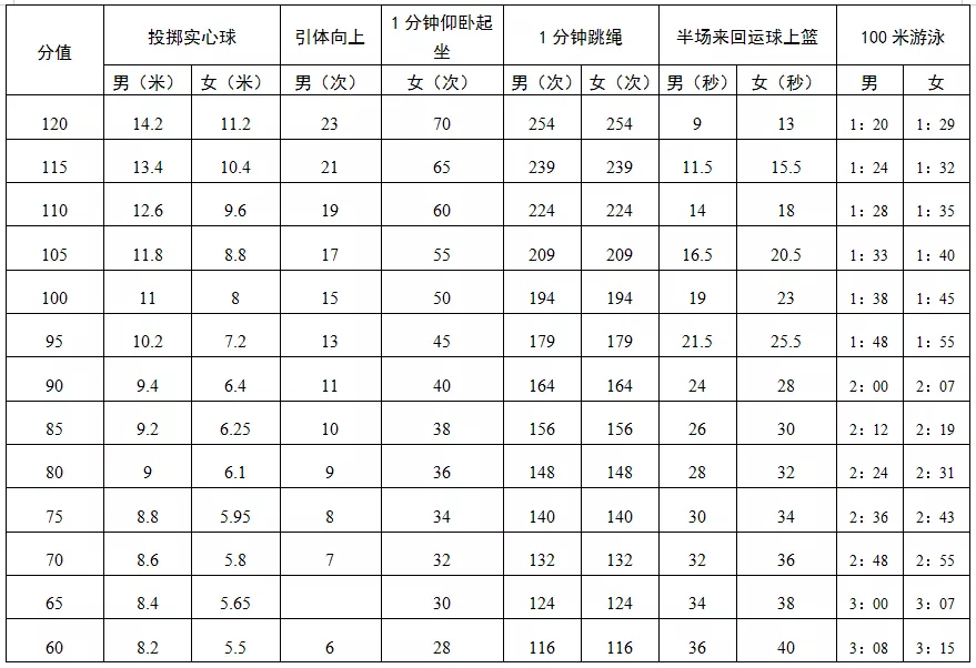 深圳市中考體育項目評分標(biāo)準(zhǔn)