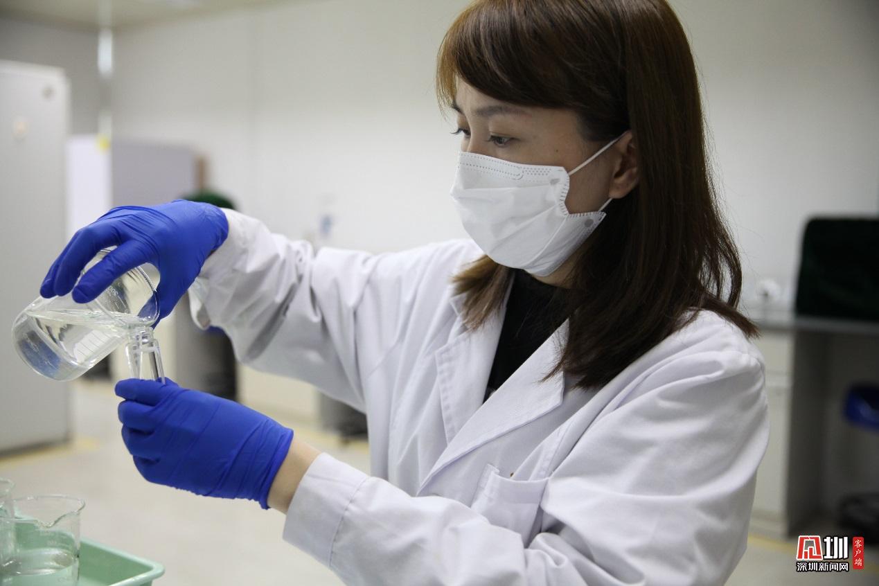 光明水務(wù)公司水質(zhì)化驗(yàn)員陳寶珠,正一絲不茍檢測水質(zhì)。