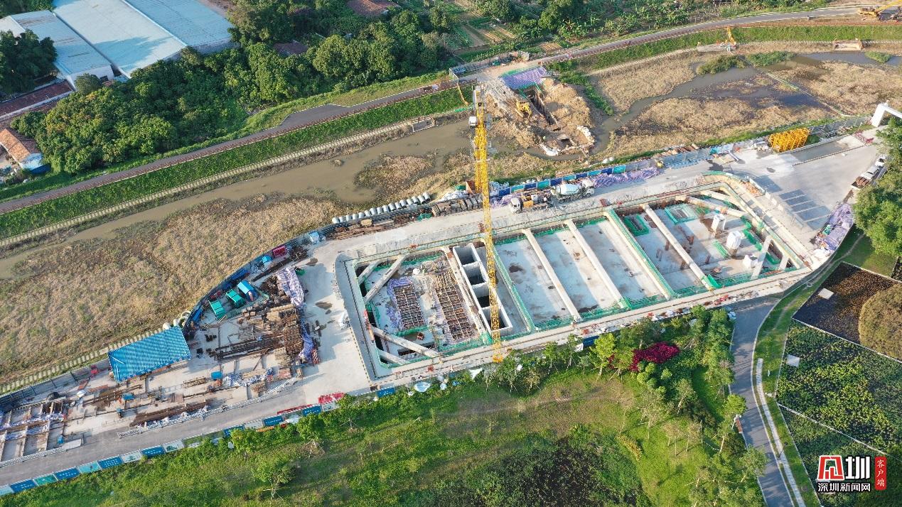 新陂頭干流調(diào)蓄池施工現(xiàn)場。為追趕進(jìn)度,搶抓工期,光明 EPC消黑項(xiàng)目部爭分奪秒,全面向著完工節(jié)點(diǎn)出發(fā)。