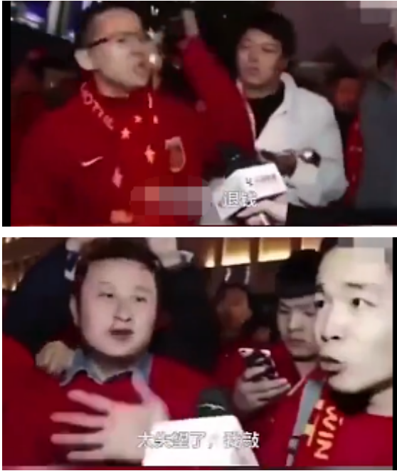 他們守在國足的現(xiàn)場采訪球迷。