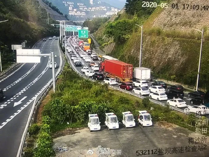 5月1日上午8時(shí)起,沈海高速荷坳段東行、深鹽二通道東行均出現(xiàn)車(chē)多緩行,并持續(xù)近10個(gè)小時(shí)的車(chē)多狀態(tài),絕大多數(shù)為出深車(chē)輛。