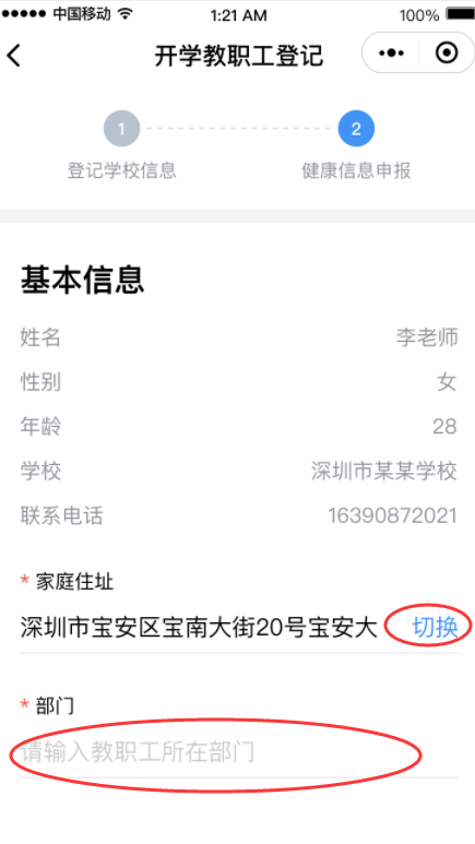 ③完成健康信息申報(bào),包括選擇家庭住址、填寫所在部門、申報(bào)健康情況等,請(qǐng)勾選申報(bào)承諾,點(diǎn)擊“生成師生健康碼”即可完成健康申報(bào)。