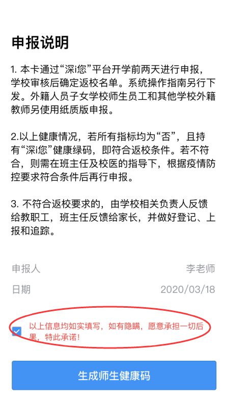 見圳客戶端·深圳新聞網(wǎng)2020年5月2日訊 深圳初三高三的學(xué)長學(xué)姐們已經(jīng)返校了,非畢業(yè)班的學(xué)弟學(xué)妹們接下來也將陸續(xù)返校。據(jù)深圳市教育局消息,5月2日(今天)開始,師生要在“深i您-自主申報(bào)”平臺(tái)的開學(xué)專區(qū)進(jìn)行健康信息申報(bào),符合條件的才可以返校。
