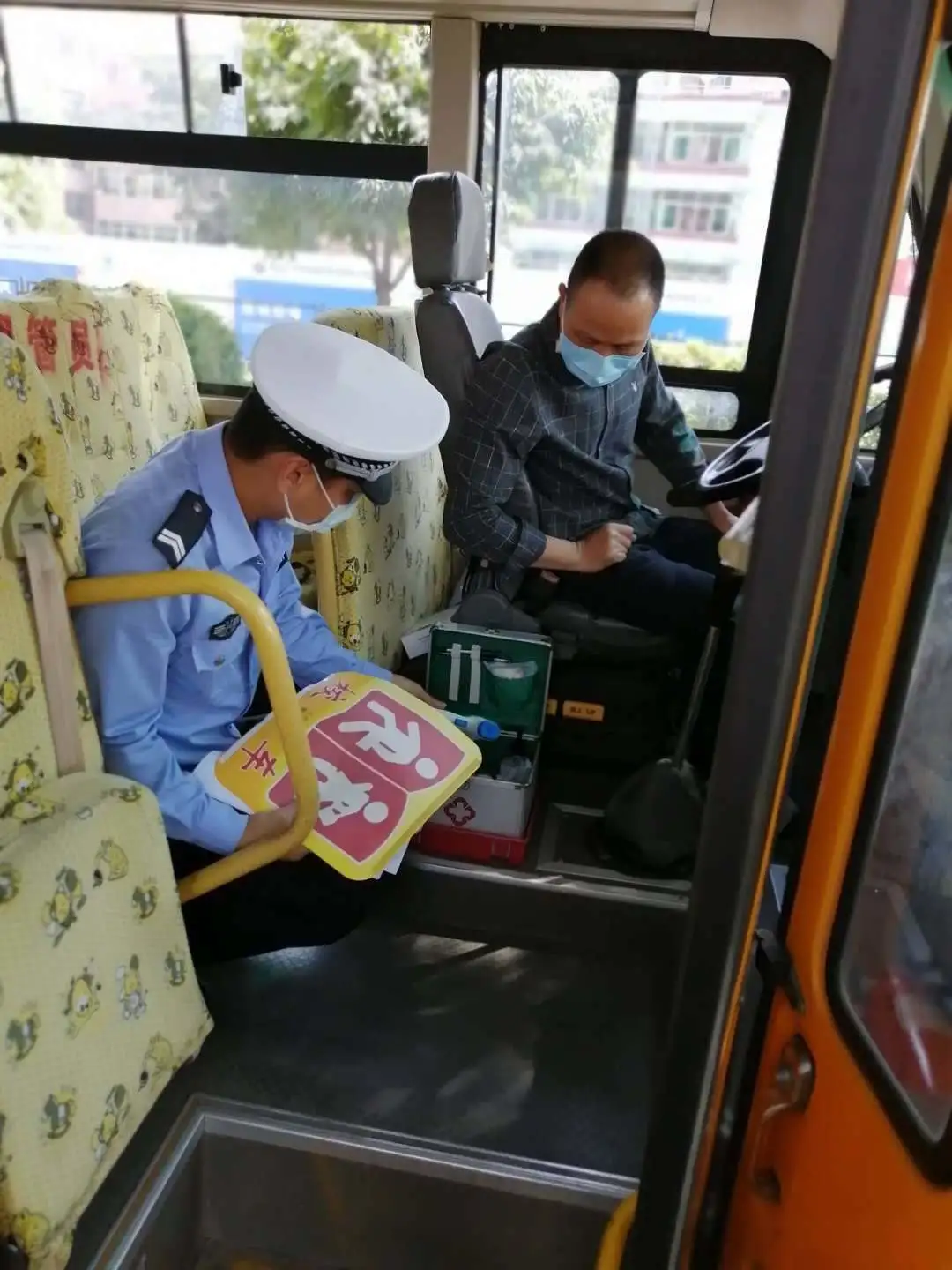 檢查校車車況及安全裝置,是否落實(shí)“每個(gè)座位一條安全帶”、配備行駛記錄功能的衛(wèi)星定位裝置、干粉滅火器、急救箱和照管人員座椅(位)、應(yīng)急出口和應(yīng)急錘(逃生錘)等安全設(shè)備、噴涂放大牌號和統(tǒng)一顏色、粘貼標(biāo)識等。
