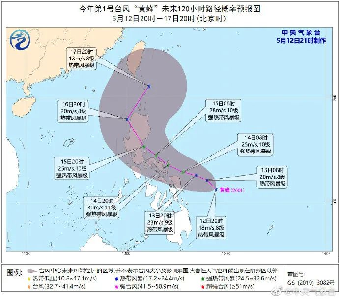 今年第1號臺風(fēng)“黃蜂”(熱帶風(fēng)暴級)