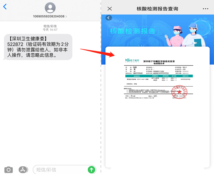 ④進(jìn)行短信驗證后,即可查詢15天內(nèi)(從5月11日起)的核酸檢測報告