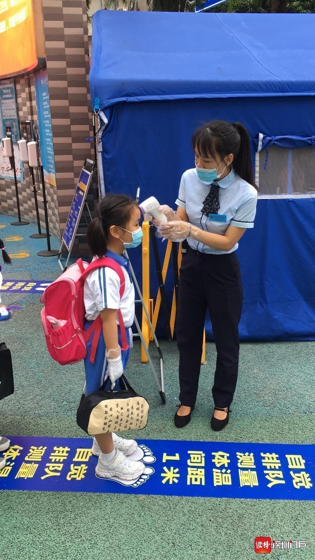 花城小學(xué):點頭問好,微笑傳情,因為有愛,相隔一米。老師們站在校門口歡迎“小花”全面歸來?。ㄗx特記者李麗)