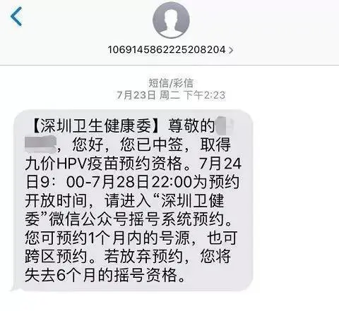 同時(shí),中簽者還會(huì)收到深圳衛(wèi)健委的短信提示。