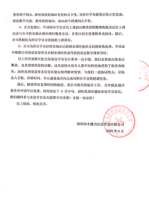 公司6月5日對家長發(fā)的公告1。家長提供。