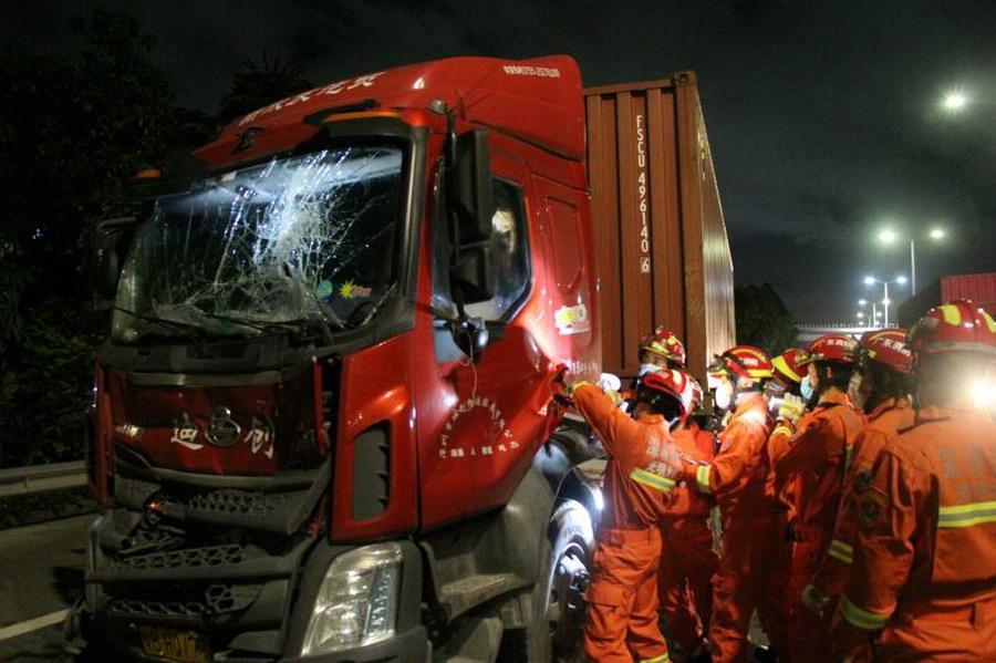 見圳客戶端·深圳新聞網2020年6月17日訊(見圳客戶端、深圳新聞網記者 張喆 通信員 戴沛旭)6月16日4時16分,位于龍大高速往東莞方向黃江公明出口500米處,兩輛大貨車在行駛過程中發(fā)生追尾,后車司機被困駕駛室。接警后,光明消防救援站迅速出動4車22名指戰(zhàn)員趕赴現(xiàn)場處置。到達現(xiàn)場后救援人員第一時間對現(xiàn)場拉起警戒,隨后利用破拆工具破開車門救出被困駕駛員,經檢查詢問男子身體無大礙。