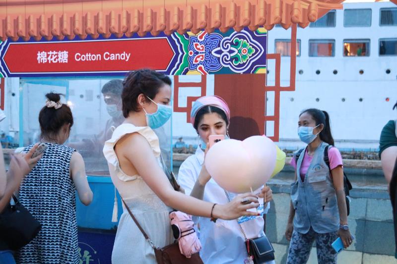 記者在現(xiàn)場看到,現(xiàn)場設(shè)置了糖畫、剪影、捏面人、皮影戲等中國傳統(tǒng)民俗攤位,不少居民有序排隊(duì)參與。活動中,居民領(lǐng)取圖鑒在每個攤位完成打卡,還可以現(xiàn)場試穿漢服。場外的大唐不倒翁表演也吸引了眾人目光。精心打扮的不倒翁小姐姐隨風(fēng)搖曳,與圍觀群眾打招呼,場面好不熱鬧。民樂團(tuán)現(xiàn)場演奏的《春江花月夜》《彩云追月》等民樂,更令活動增添幾分傳統(tǒng)風(fēng)韻。