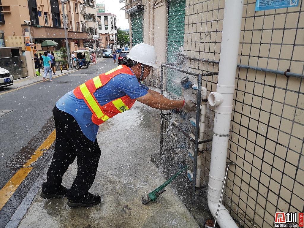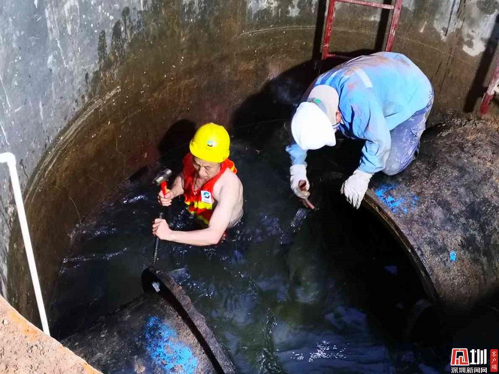 正午烈日下深圳水務(wù)集團(tuán)工作人員正在進(jìn)行作業(yè)。