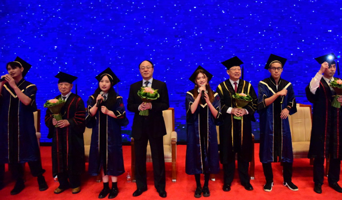 【紅嶺中學】考生學長來到考點門口為學弟舉起“奧利給”的旗子。