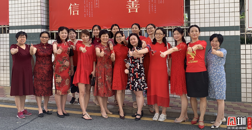 【深圳中學(xué)】身穿紅色旗袍的家長們預(yù)祝考生們旗開得勝。