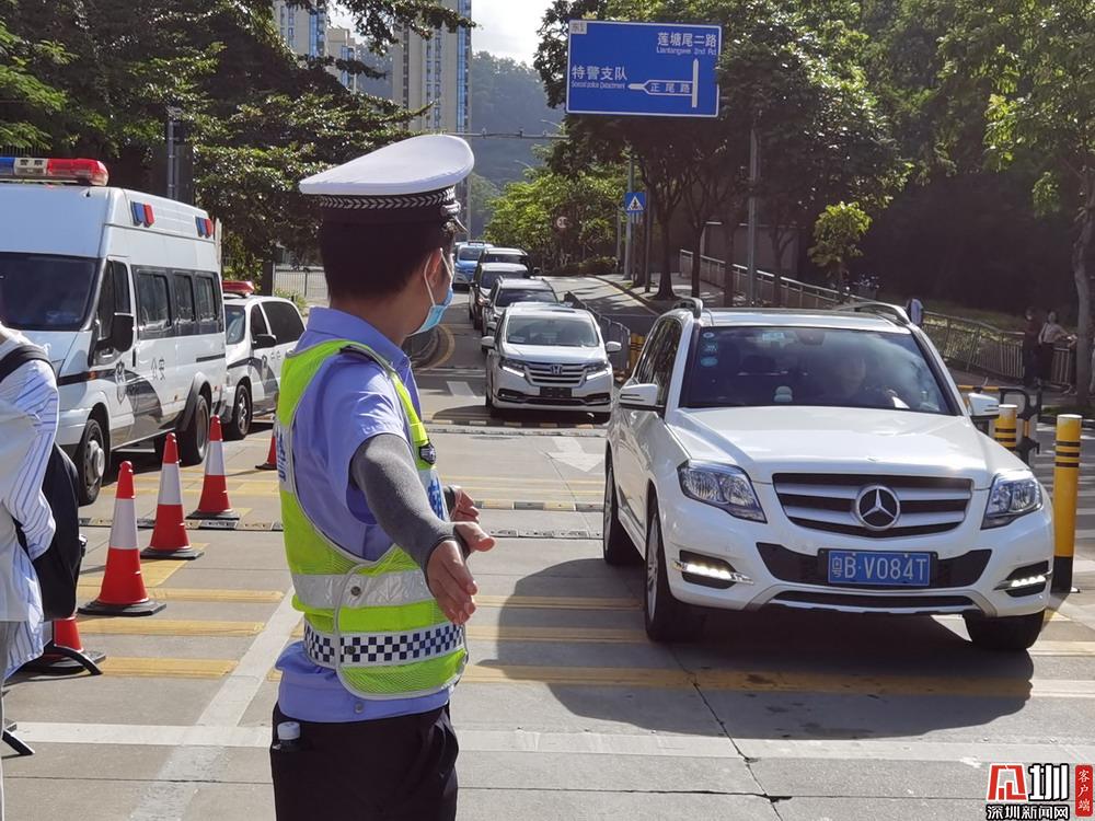 【紅嶺中學(xué)】考點(diǎn)門口正在指揮車輛通行的交警。