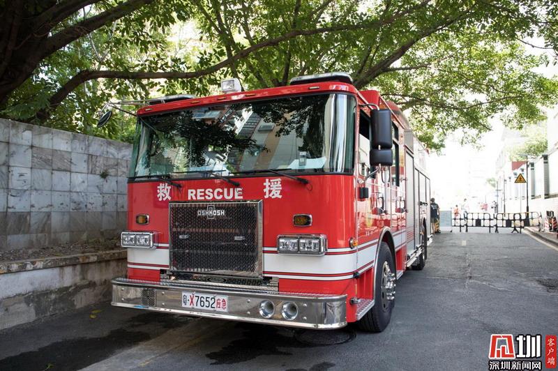 深圳中學(xué)考點(diǎn)外待命的消防救援車(chē)。