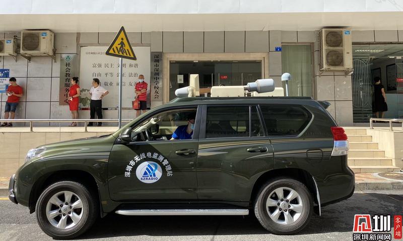 深圳中學(xué)考點(diǎn)外無(wú)線電監(jiān)測(cè)管理站工作車(chē)輛在現(xiàn)場(chǎng)進(jìn)行保障任務(wù)。