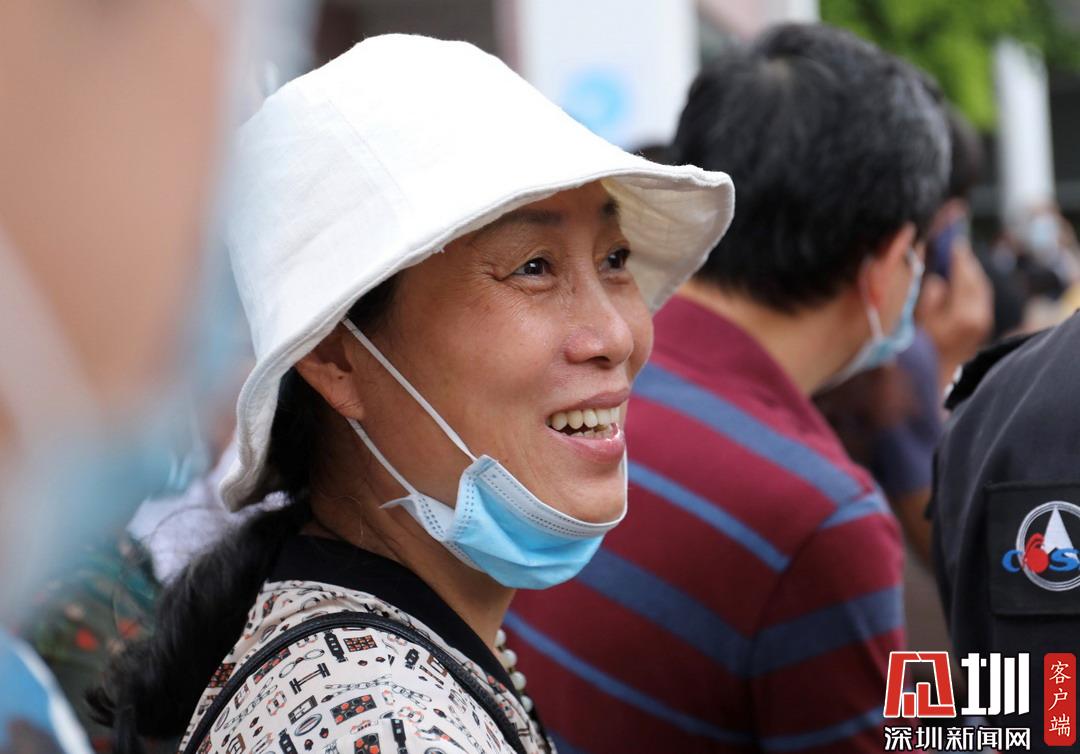 深圳高級中學(xué)考點(diǎn)外家長看見孩子笑臉相迎。