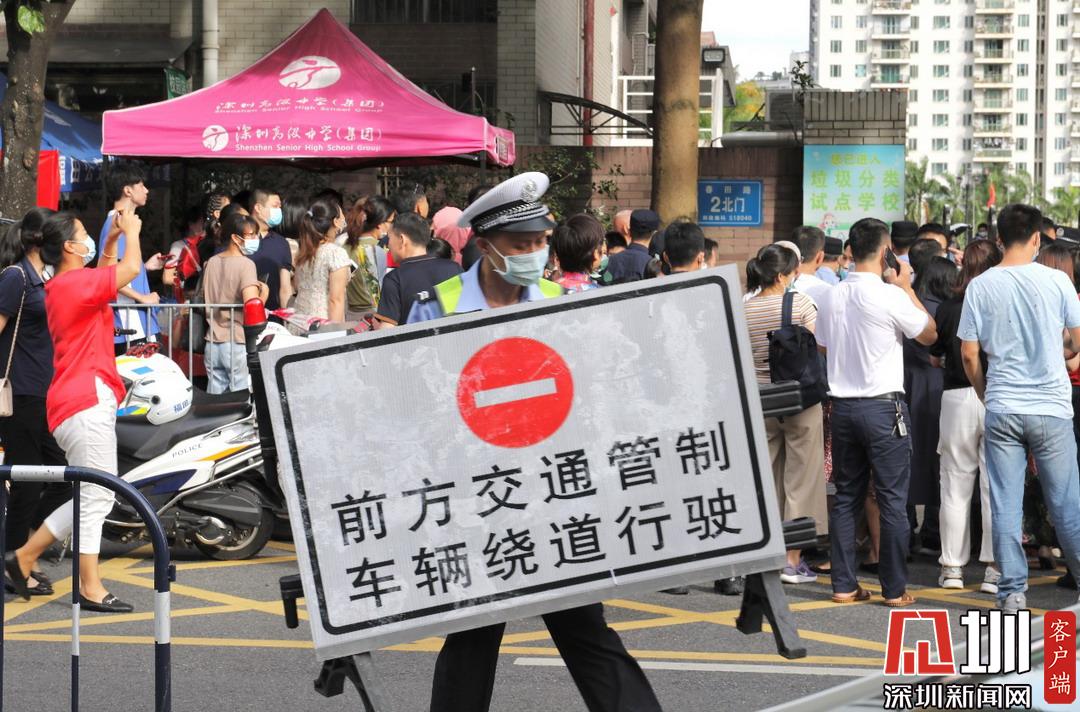 深圳高級中學(xué)考點(diǎn)外,福田交警加強(qiáng)周邊道路巡邏管控。