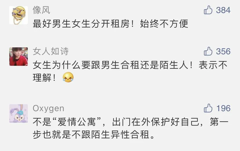 說到合租,請一定要謹(jǐn)慎選擇室友,尤其是男女合租,安全問題不容忽視,凡事多留個心眼,一定要保護(hù)好自己。