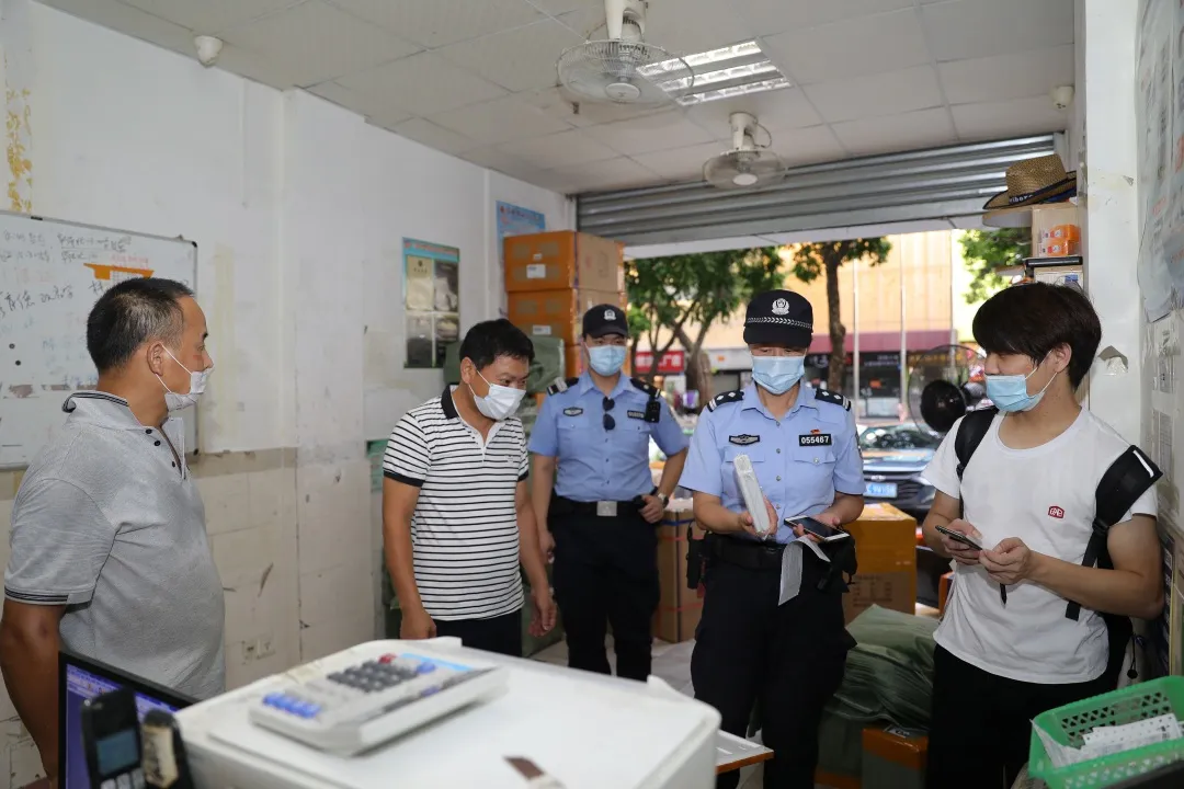 ▲民警在物流點(diǎn)開展檢查工作