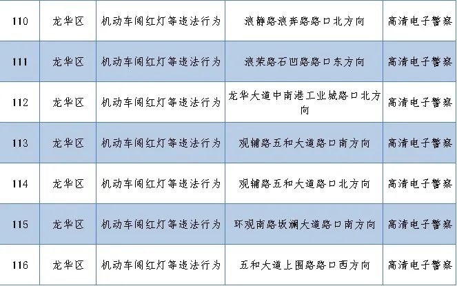 新增116套電子警察監(jiān)控設備,用于查處闖紅燈、逆行、進入導向車道變更車道等違法行為,分布在車流量較大的信號路口及路段。