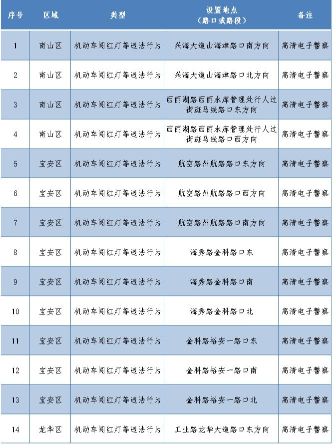 見圳客戶端·深圳新聞網2020年7月28日訊 為保障道路的通行有序和安全,加大對機動車違法行為的非現(xiàn)場執(zhí)法力度,保障深圳道路交通安全暢順。近期,深圳交警根據《道路交通安全違法行為處理程序規(guī)定》(公安部令105號)第十六條規(guī)定,依法公布啟用262套交通技術監(jiān)控設備。