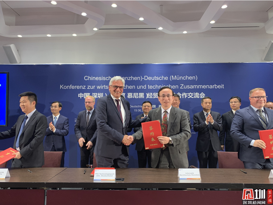 2019年6月,深信院與寶安區(qū)人民政府、德國烏爾姆TFU科技園、德國史太白經(jīng)濟(jì)促進(jìn)基金會在德國慕尼黑正式簽署四方聯(lián)合共建的“灣區(qū)中德教育與經(jīng)濟(jì)協(xié)同發(fā)展示范基地”合作框架協(xié)議。