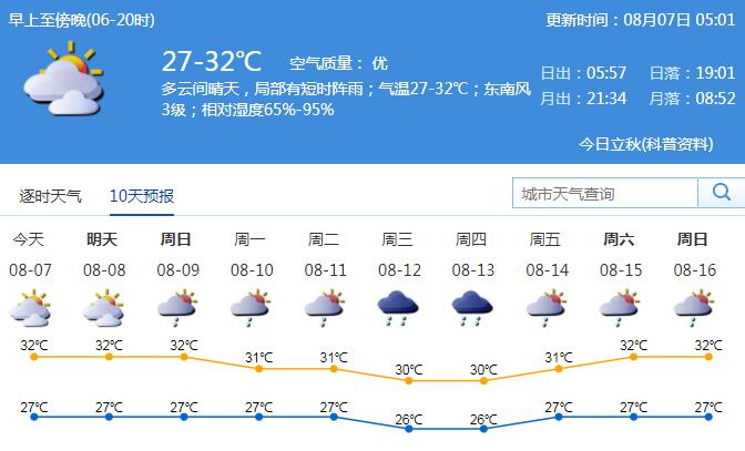 見圳客戶端·深圳新聞網(wǎng)2020年8月7日訊 降雨暫緩,高溫又卷土重來。8月7日白天,全市以多云天氣為主,偶有短時(shí)陣雨,早晚最低氣溫在27℃左右,中午前后最高氣溫在32℃左右,漸趨悶熱。市內(nèi)維持2-3級東南風(fēng);空氣濕度大,相對濕度65%-90%。