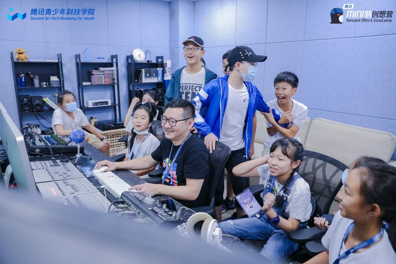 騰訊CROS音頻團(tuán)隊(duì)導(dǎo)師在專業(yè)錄音棚指導(dǎo)學(xué)員們進(jìn)行音頻錄制與剪輯