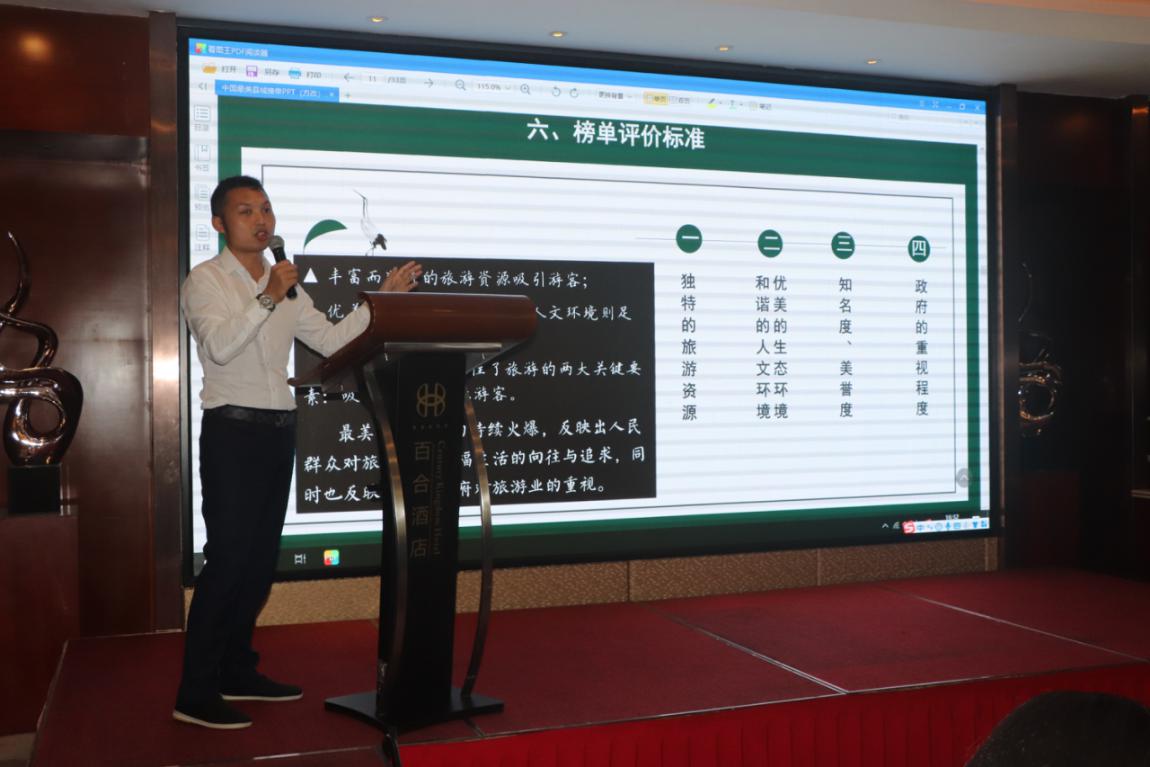 中國最美縣域榜單融媒體主任李帥向與會(huì)嘉賓介紹中國最美縣域榜單,并希望各地認(rèn)真踐行“綠水青山就是金山銀山”發(fā)展理念,建設(shè)“最美縣域”,共圓“美麗中國”夢。