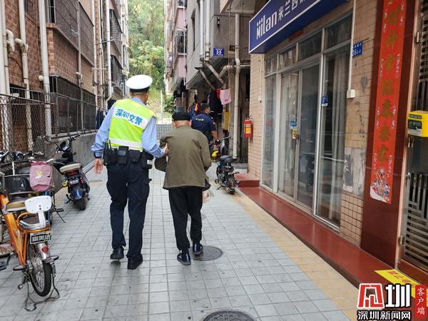 當(dāng)天早上9時(shí)許,羅湖交警大隊(duì)民警劉峰帶領(lǐng)隊(duì)員在沿河北路口開(kāi)展深港貨車(chē)防疫檢查工作。執(zhí)勤過(guò)程中,一老人十分焦急找民警求助:因年紀(jì)太大記不清回家的路,不知道怎么辦,請(qǐng)求民警予以幫助。老人不會(huì)說(shuō)普通話(huà),講的是四川方言,吐字不清,身上沒(méi)有帶手機(jī)也聯(lián)系不上家人,但在劉峰的耐心詢(xún)問(wèn)下,了解到老人住在水庫(kù)新村,但記不清具體住在哪一棟。隨即,劉峰親自帶領(lǐng)隊(duì)員扶老人登上警車(chē),護(hù)送其到水庫(kù)新村。一路上,劉峰與老人細(xì)心交談,緩解老人焦急的情緒。