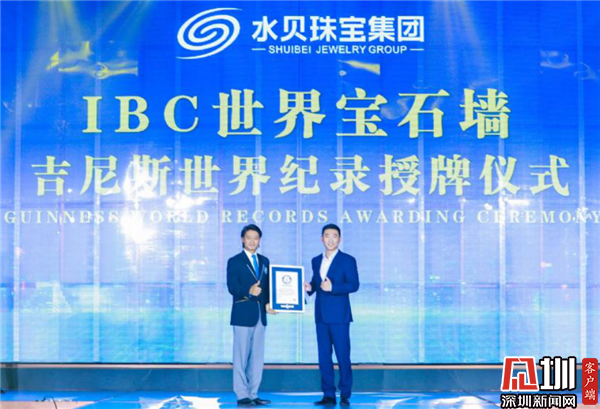 在本次“天工精制”見證盛典活動(dòng)上,舉行了IBC世界寶石墻吉尼斯世界紀(jì)錄授牌儀式,水貝珠寶集團(tuán)副總裁盧森榮從吉尼斯世界紀(jì)錄官方認(rèn)證官楊紹鵬手中接過認(rèn)證證書,標(biāo)志著IBC世界寶石墻挑戰(zhàn)世界“面積最大,珠寶種類最豐富”的寶石壁畫紀(jì)錄成功。全場(chǎng)嘉賓一同親歷“世界之最”的誕生,高端賽事見證國(guó)際殊榮,IBC世界寶石墻閃耀而來,這件劃時(shí)代的藝術(shù)作品成為世界珠寶文化的傳播載體與精神堡壘,是一個(gè)偉大的壯舉。