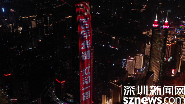 隨著參會(huì)領(lǐng)導(dǎo)和嘉賓按下儀式啟動(dòng)鍵,羅湖地標(biāo)建筑京基100被“點(diǎn)亮”,滾動(dòng)顯示“百年華誕 紅動(dòng)一百”、“崢嶸歲月 百年風(fēng)華”祝福語,噴泉廣場(chǎng)亮如白晝,映入觀眾眼中,現(xiàn)場(chǎng)發(fā)出陣陣贊嘆聲,將慶祝的氛圍推向高潮。