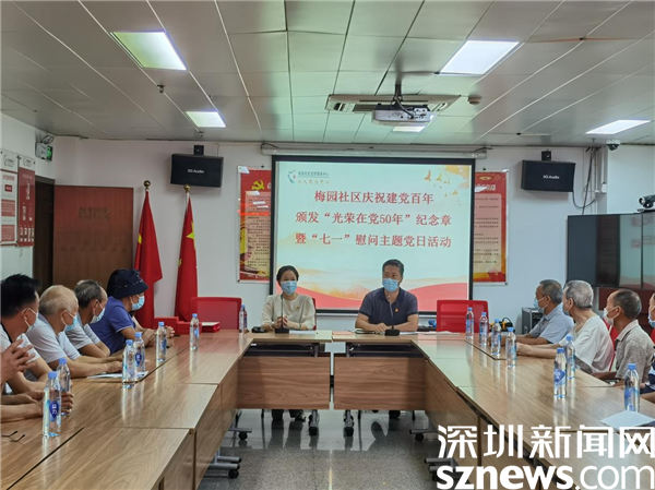 讀特客戶端·深圳新聞網(wǎng)2021年6月30日訊(記者 郭含笑 通訊員 陳秋珊 紀楚苗)為進一步加強和體現(xiàn)黨組織對黨員的關(guān)心與愛護,在中國共產(chǎn)黨百年華誕來臨之際,6月30日下午,深圳市羅湖區(qū)清水河街道梅園社區(qū)黨委在黨群服務(wù)中心二樓會議室舉行慶祝建黨百年頒發(fā)“光榮在黨50年”紀念章暨“七一”慰問主題黨日活動。