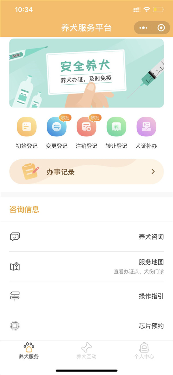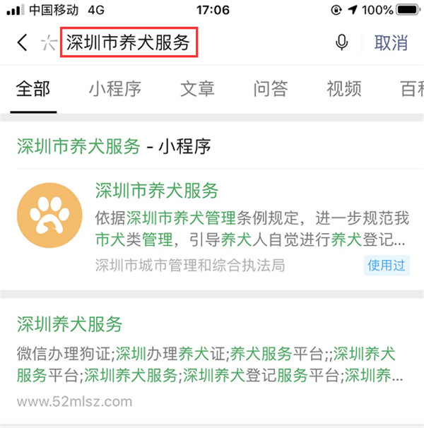溫馨提示:尚未辦理養(yǎng)犬登記的市民朋友,可以登錄“廣東政務服務網(wǎng)”或通過微信搜索“深圳市養(yǎng)犬服務”小程序,足不出戶便可在線辦理養(yǎng)犬初始登記。養(yǎng)犬服務平臺可根據(jù)實際需求申請辦理初始、變更、注銷等登記事項,還可進行芯片預約、通過地圖查看養(yǎng)犬服務機構(gòu)(辦證點、犬傷門診)地址及聯(lián)系電話等。