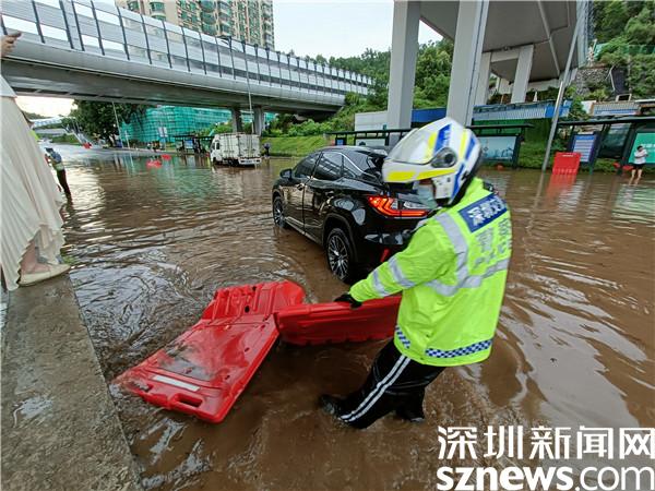 在惡劣天氣下,羅湖交警頂著暴雨、迎著狂風,始終奮戰(zhàn)在疏通道路、保障平安的前線,幫助受困群眾和車輛,以實際行動保障廣大群眾出行安全。