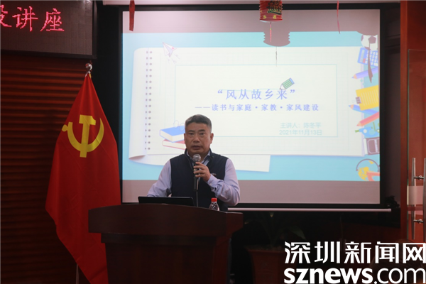 讀特客戶端·深圳新聞網(wǎng)2021年11月15日訊(記者 劉嘉敏 通訊員 黃北全)“故鄉(xiāng)的人,故鄉(xiāng)的事;鮮活的面容,厚實(shí)的情意,隨著年齡的增長(zhǎng)而愈加清晰,過往的經(jīng)歷都成為生命中美好的回憶?!睘榧訌?qiáng)“家庭家教家風(fēng)”建設(shè),促進(jìn)未成年人健康成長(zhǎng),在第二十二屆深圳讀書月開展之時(shí),2021年11月13日下午,深圳市羅湖區(qū)婦女聯(lián)合會(huì)和羅湖區(qū)婦女兒童活動(dòng)中心特舉辦“‘風(fēng)從故鄉(xiāng)來’——讀書與家庭家教家風(fēng)建設(shè)”主題講座,特別邀請(qǐng)深圳市桂園中學(xué)黨總支副書記,中學(xué)高級(jí)教師,中國(guó)散文學(xué)會(huì)會(huì)員,廣東省“點(diǎn)燈人”校園閱讀推廣人,廣東省作家協(xié)會(huì)會(huì)員陳冬平老師主講,40多名區(qū)內(nèi)外家長(zhǎng)和學(xué)生參加本次活動(dòng)。