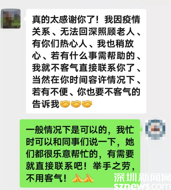 原來(lái),“紅馬甲”是老圍社區(qū)網(wǎng)格員劉珍蓮,她陪老人李曉萍來(lái)做核酸檢測(cè)。檢測(cè)順利結(jié)束,老人一激動(dòng),就抱著劉珍蓮哭了起來(lái)。事后,老人的兒子,身在香港的溫先生給劉珍蓮發(fā)來(lái)微信,說(shuō):“非常感謝你帶我媽去做核酸檢測(cè),我媽都感動(dòng)到哭了?!?/p>