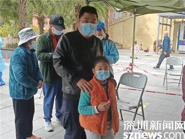 “奶爸”正在帶小朋友做核酸。