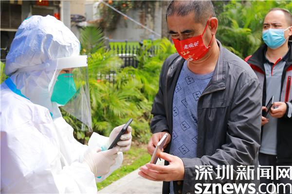 從2月17日開始,劉曉勇加入安保公司,被派到羅湖區(qū)東曉街道支援疫情防控工作,至今已有13天,13天里,他跟隨隊(duì)伍轉(zhuǎn)遍了東曉街道各個(gè)核酸檢測點(diǎn),從分流人群、維持秩序,到掃碼、引導(dǎo)居民操作、核酸檢測點(diǎn)布置、采樣結(jié)束收尾……對每個(gè)流程都了如指掌;13天里,他每天工作十幾個(gè)小時(shí),從早上九點(diǎn)到晚上十點(diǎn)、十一點(diǎn),只在中午輪班吃飯的時(shí)候有十幾分鐘休息時(shí)間。