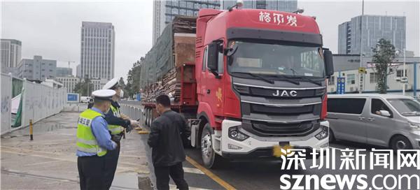 3月28日下午,羅湖交警大隊(duì)機(jī)訓(xùn)中隊(duì)民警謝威帶領(lǐng)執(zhí)勤警力在轄區(qū)清水河三路執(zhí)勤時(shí),發(fā)現(xiàn)一臺(tái)車(chē)牌號(hào)為豫P****7的六軸大貨車(chē)疑似存在超高運(yùn)輸?shù)慕煌ㄟ`法行為,隨即將該車(chē)引導(dǎo)至路邊安全地帶進(jìn)行測(cè)量。