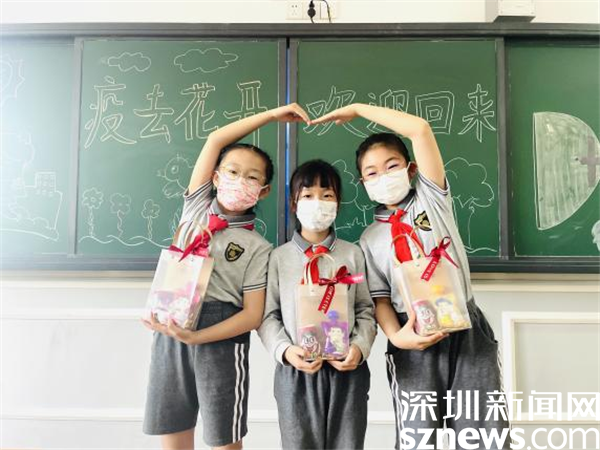 三年級各班更是個性十足,旺仔、禮物袋、可吸果凍一應(yīng)俱全,孩子期盼的心被滿滿的愛充斥著?!皩W(xué)校就是我的家!”