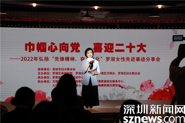 讀特客戶端·深圳新聞網(wǎng)2022年5月7日訊(記者 郭含笑 通訊員 陳偉 敖凌子)5月7日下午,“匯聚巾幗新力量踔厲奮進新征程”——弘揚“先鋒精神、奮斗文化”羅湖女性先進事跡分享會在羅湖區(qū)婦女兒童活動中心舉辦。 此次分享會是由深圳市婦女聯(lián)合會指導,羅湖區(qū)委組織部、羅湖區(qū)委統(tǒng)戰(zhàn)部、羅湖區(qū)文明辦、羅湖區(qū)婦女聯(lián)合會聯(lián)合主辦,是羅湖區(qū)婦聯(lián)開展的“巾幗心向黨、喜迎二十大”群眾性主題宣傳教育系列活動之一?;顒又荚诎l(fā)揮先進女性模范的示范引領作用,發(fā)揮婦聯(lián)組織宣傳表彰的三八紅旗手、巾幗建功標兵等先進典型的激勵帶動作用,推動形成崇尚榜樣、學習模范、爭當先進的良好社會風尚。 深圳市婦聯(lián)黨組成員、副主席彭迎九,羅湖區(qū)委組織部、區(qū)委宣傳部、區(qū)委統(tǒng)戰(zhàn)部、區(qū)婦聯(lián)、文錦渡邊防檢查站等單位相關領導出席活動。各街道婦聯(lián)主席、“巾幗建功評優(yōu)評先”獲獎代表、羅湖區(qū)新興領域婦聯(lián)組織代表等參加此次分享會。 10間“喜閱屋”讓萬余名孩子受益 分享會上,來自深港兩地的5位先進女性代表共同分享了成長歷程,講述了她們的奮斗故事。 “一項‘她計劃’,成全一件事;一間‘喜閱屋’,成全一群人”。文錦渡出入境邊防檢查站黨委書記、站長,二級警務專員、二級警監(jiān),羅湖區(qū)婦聯(lián)執(zhí)委,全國特級優(yōu)秀人民警察呂平分享了她的“益”路奮斗歷程。她帶領團隊打造出專為鄉(xiāng)村兒童設計的閱讀室——“喜閱屋”。六年來,呂平帶領團隊在四省七地建設的10間“喜閱屋”讓超過萬余名孩子受益。在日常工作中,文錦渡邊檢站的女警也積極服務群眾、服務社區(qū),這種責任自覺形成的先鋒精神,給這支隊伍帶來可喜的變化,先后獲得“全國巾幗文明崗”“全國五一巾幗標兵崗”等多項榮譽。 成為羅湖區(qū)首批“四新”領域組織婦聯(lián)之一 “我的不幸卻成就了我的所幸?!绷_湖區(qū)融愛腦癱家庭關愛協(xié)會會長袁艷玲也上臺分享了她的故事。她不僅是羅湖區(qū)融愛媽媽婦聯(lián)主席,還是一位腦癱兒童的母親。得知孩子患有此病,她曾一度有放棄生命的想法和行為,是“陽光媽媽”學堂讓她重燃對生活的希望,并于2016年聯(lián)合其他腦癱患者的家屬共同發(fā)起注冊首個腦癱患者家長組織——深圳市羅湖區(qū)融愛腦癱家庭關愛協(xié)會。2020年又成立了羅湖區(qū)融愛媽媽婦女聯(lián)合會,成為羅湖區(qū)首批“四新”領域組織婦聯(lián)之一。 隨后,由腦癱兒童組成的小青蛙樂團現(xiàn)場帶來非洲鼓表演《聽我說謝謝你》,在表演結束后孩子們一起送花給身后的母親,那一聲“媽媽您辛苦了”讓現(xiàn)場不少觀眾紅了眼眶。 服務深港兩地跨境家庭十年 在深港兩地做社工是什么體驗?社會組織公益人士、深港服務人員代表倪怡潔為大家分享她的十年深港社工之旅。從2012年由香港國際社派駐到深圳開展跨境服務開始,她以羅湖為起點,服務深港兩地的跨境家庭已逾十年。 這十年的社工之旅讓她堅信,羅湖的溫暖會讓在這里安家落戶的港人家庭愛深圳愛香港,成為大灣區(qū)發(fā)展的強大動力。在分享后,倪怡潔與羅湖區(qū)跨境學童合唱團共同深情合唱《我和我的祖國》,感謝祖國母親的培育。 求學歸來書寫與羅湖的故事 深圳鴻燁盈泰資產管理有限公司負責人鄧夢盈也帶來了她與羅湖的精彩故事。曾海外留學的她,堅定放棄海外的高薪工作,回到羅湖自己創(chuàng)業(yè)。突如其來的疫情讓創(chuàng)業(yè)初期的鄧夢盈陷入了深深的不安,但辦法總比困難多。鄧夢盈迅速抓住互聯(lián)網(wǎng)渠道,開展線上銷售,擴大宣傳,同時做起視頻號,擴大公司知名度,業(yè)務蒸蒸日上。同時,她也承擔著區(qū)人大代表這個光榮的使命,多次提出議案為群眾謀求福利。 母女時空對話將現(xiàn)場氣氛推至高潮 將現(xiàn)場氛圍推向高潮的,是大望小學六年級的楊羽萱同學為媽媽創(chuàng)作的一首歌曲和母女的時空對話。楊羽萱的媽媽吳蓮英是大望社區(qū)黨群服務中心的社工。2020年新冠肺炎疫情暴發(fā),吳蓮英大年初二就回到社區(qū)全身心投入防疫工作。“加班到深夜回家的媽媽、遇到突發(fā)情況和險情從未退縮的媽媽、在危機干預現(xiàn)場遭受危險的媽媽......”一一記在了女兒楊羽萱的心里。 在五位先進女性分享結束后,羅湖區(qū)婦聯(lián)黨組成員、副主席田林為她們頒發(fā)了榮譽狀。羅湖區(qū)直機關工委書記、區(qū)委組織部二級調研員汪家萍,區(qū)委統(tǒng)戰(zhàn)部副部長、區(qū)僑務局局長杜陽分別為深圳市羅湖區(qū)會挑直播廣場婦女聯(lián)合會、深圳市羅湖區(qū)海外留學歸國人員協(xié)會婦女聯(lián)合會代表授牌,持續(xù)推進婦女工作向新階層、新領域擴展。 緊接著,分享會上舉行了“巾幗建功評優(yōu)評先”獲獎代表授牌儀式。深圳市婦聯(lián)黨組成員、副主席彭迎九為2021年廣東省三八紅旗集體、廣東省巾幗文明崗獲獎單位授牌。羅湖區(qū)委宣傳部副部長劉挺凱為2021年市級巾幗文明崗、巾幗文明崗創(chuàng)崗先進個人等獲獎代表授牌表彰。 彭迎九表示,今年,深圳市婦聯(lián)將在全市開展“巾幗心向黨、喜迎二十大
