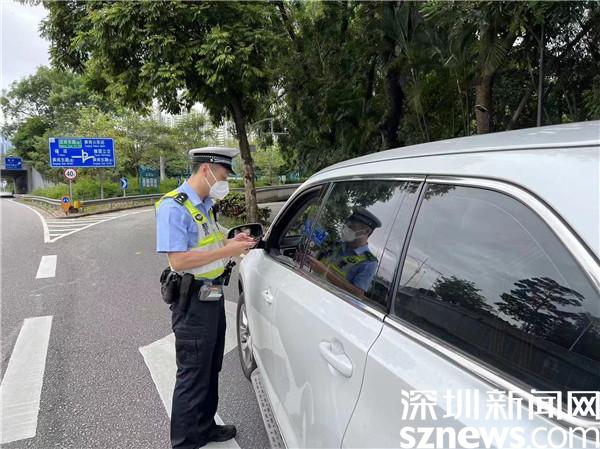 5月24日下午,羅湖交警大隊機訓中隊組織警力在人民公園路開展卡口專項整治行動期間,發(fā)現(xiàn)一輛車牌號為粵S7***9的小車涉嫌多次違法未處理,于是立即示意該車駕駛員靠邊停車接受檢查。