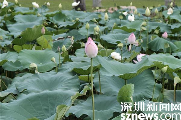 讀特客戶端·深圳新聞網(wǎng)2022年6月16日訊(記者 劉嘉敏 邱婕)近日深圳迎來(lái)連綿雨季,適逢六月夏至將至,深圳市洪湖公園百畝荷塘相繼盛放。當(dāng)花期遇到了雨季,在一張張荷葉的簇?fù)硐?,荷花如期盛開(kāi)。6月15日,深圳新聞網(wǎng)記者走進(jìn)洪湖公園,只見(jiàn)一派“接天蓮葉無(wú)窮碧、映日荷花別樣紅”的景色,讓人大飽眼福。